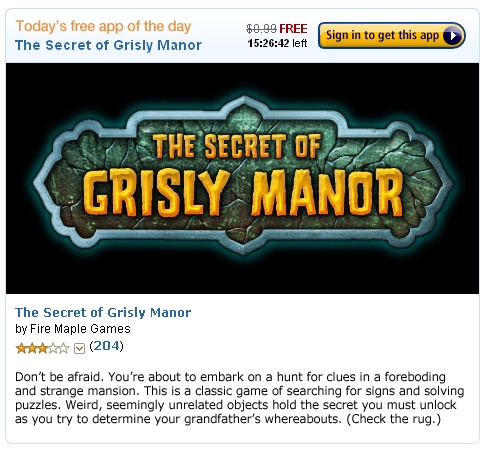 Today in the Amazon App Store you can grab yourself a free copy of The Secret of Grisly Manor. This is one classic point-and-click adventure game that you will find very amusing and addicting. It’s a huge hit on the iPhone and is also available on Android. In this family-friendly adventure game you get to explore a mysterious old mansion in search of the missing grandfather.
